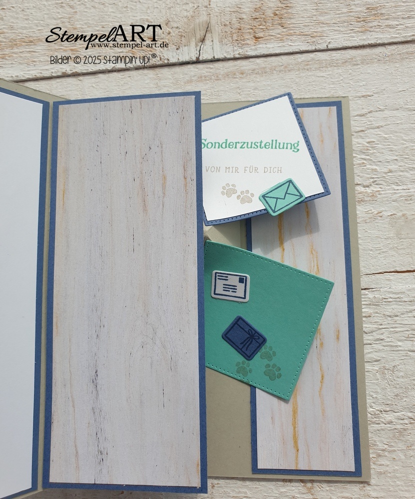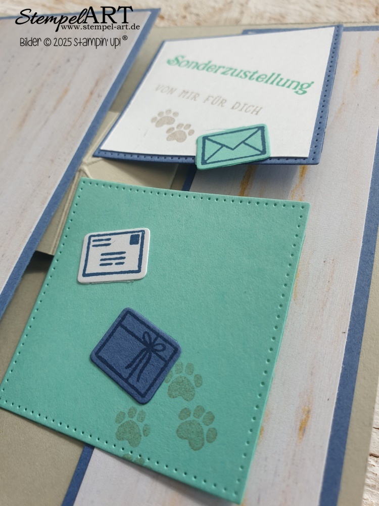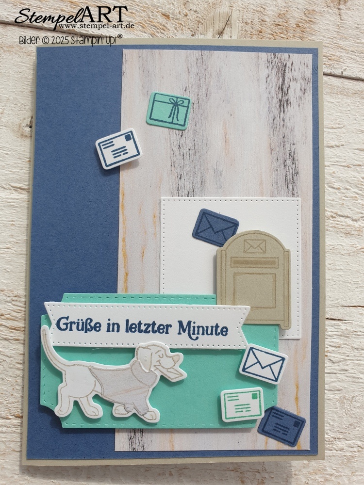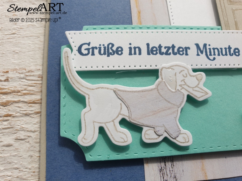 Wer es schlichter möchte, kann den Hund natürlich weg lassen und nur den Briefkasten und die Briefe verwenden (liebe Grüße an Dich, Dorothea… auch ohne Hund sieht die Karte klasse aus 😉 ).