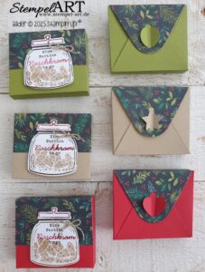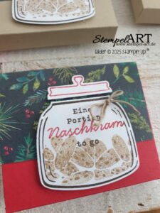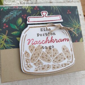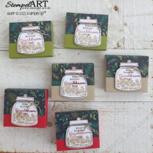 Ich finde es total praktisch, dass es für die Elementstanze „Süsses Bonbonglas“ zwei verschiedene, passende Stempelsets gibt: zum einen das gleichnamige Set „Süsses Bonbonglas“ (zusammen sogar als Sparpaket 10% günstiger 😉 ) und zum anderen die weihnachtliche Variante „Weihnachtsfreude im Glas“.