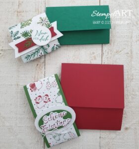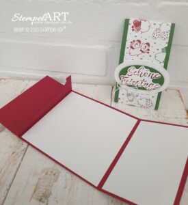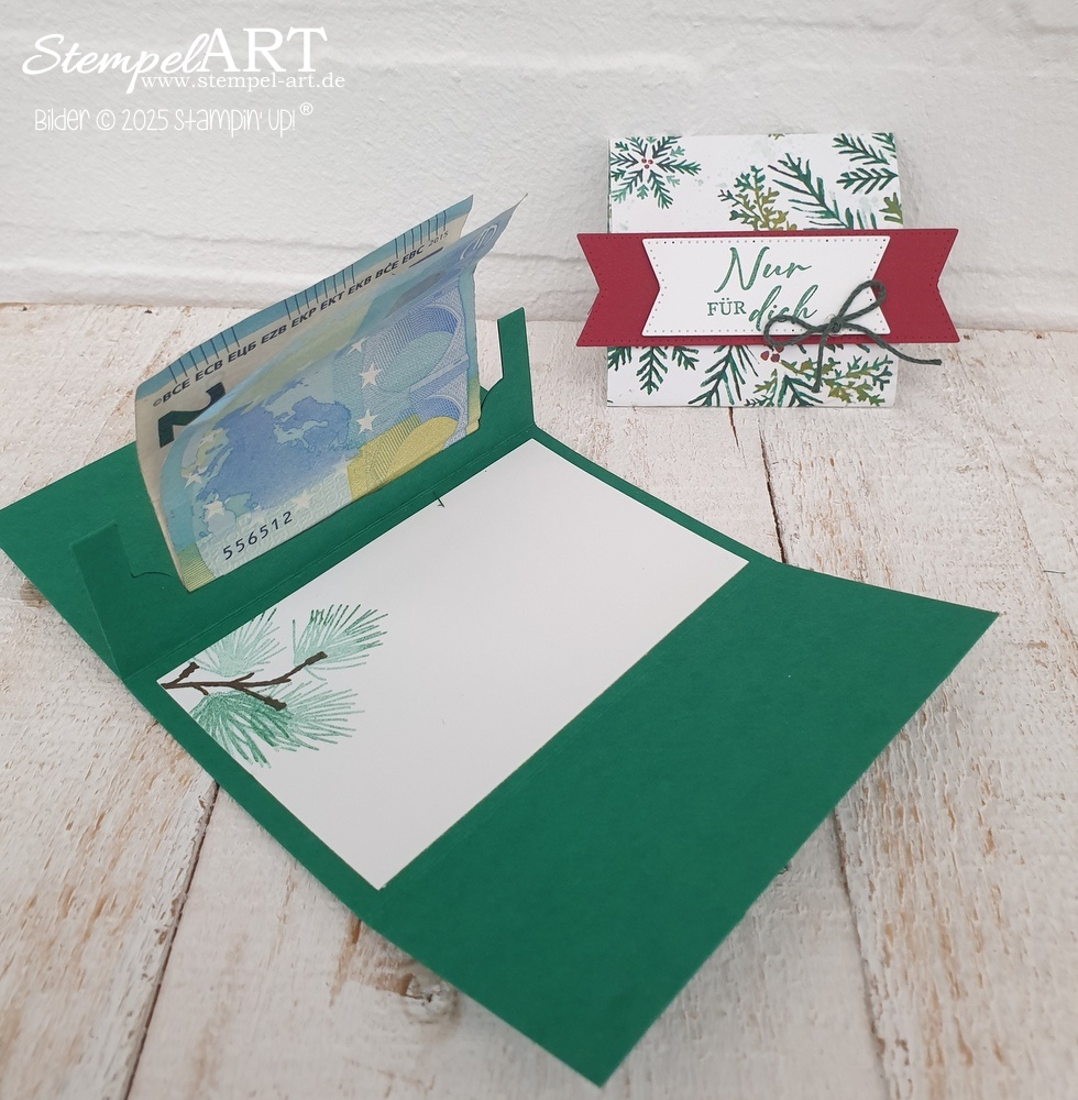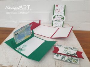 …kann man die Kärtchen aufklappen und es stellt sich das Geschenk auf – ein Geldschein, eine Gutscheinkarte im Scheckkartenformat oder auch einfach ein Kärtchen, auf dem man z. B. einen Gutschein für gemeinsame Zeit oder einfach einen lieben Wunsch schreiben kann – ganz nach Bedarf.