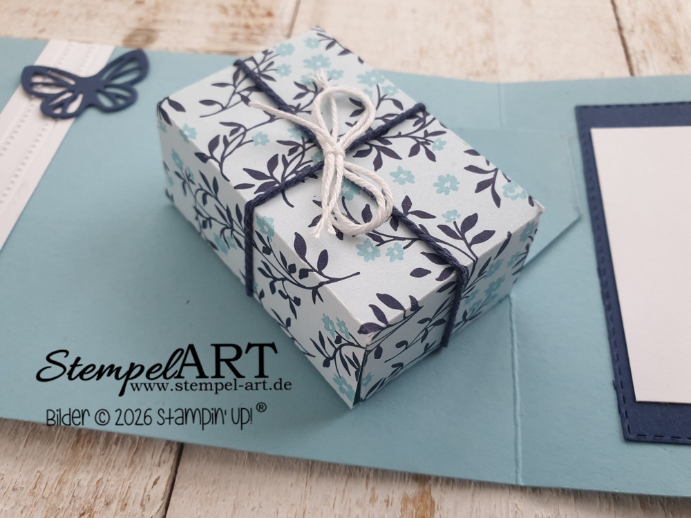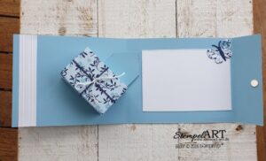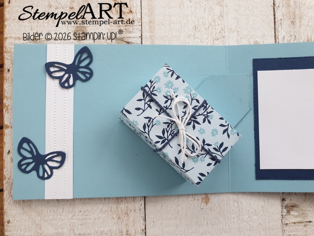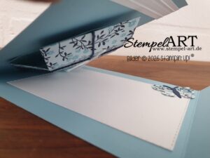 Bei dieser Pop-up Karte versteckt sich der Clou mal wieder im Inneren der Karte – von aussen sieht sie aus wie eine herkömmliche Karte (bzw. wie zwei Karten 😉 ).