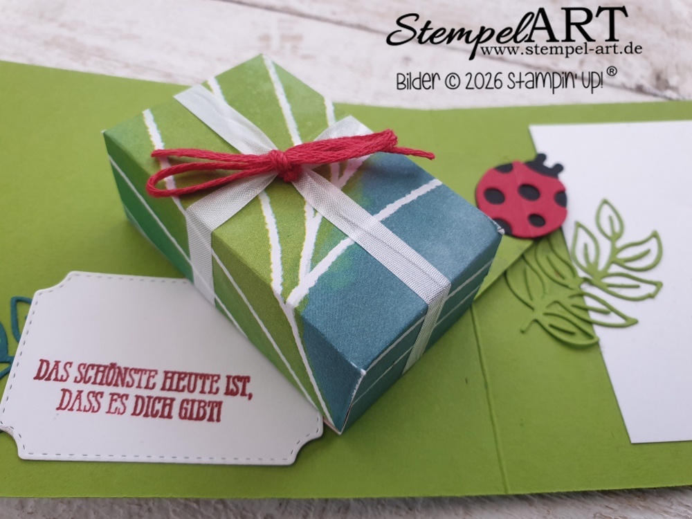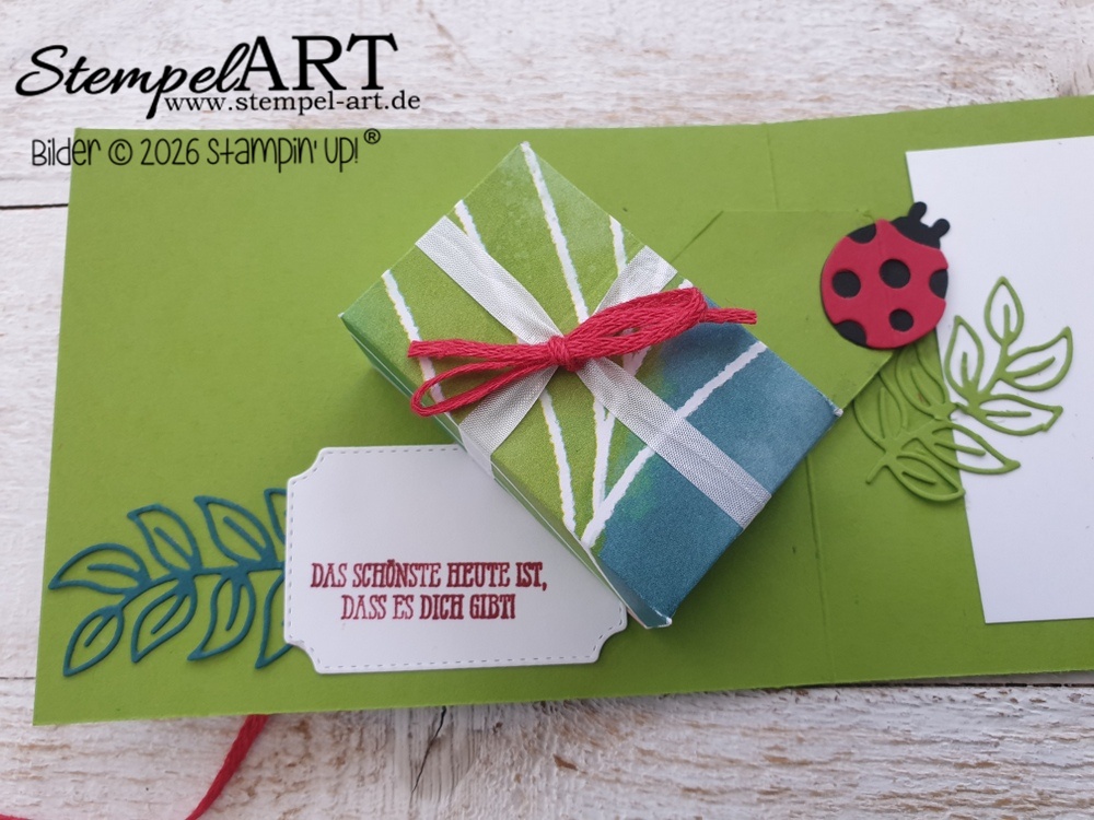 Das Geschenk poppt beim Öffnen der Karte auf!